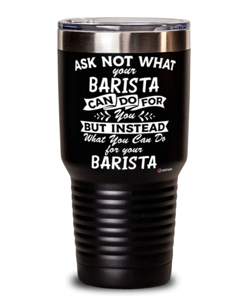 Funny Barista Tumbler Ask Not What Your Barista Can Do For You 30oz Stainless Steel Black