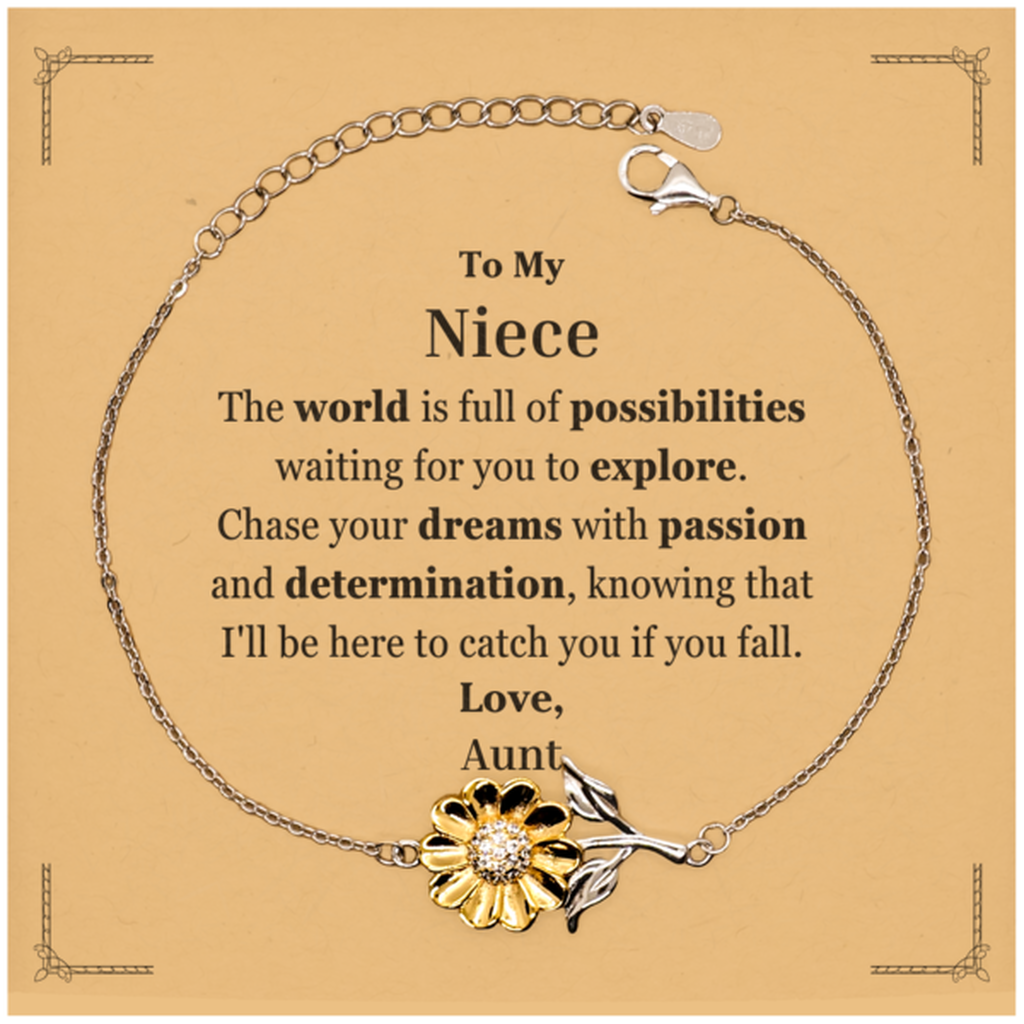 To My Niece Supporting Sunflower Bracelet, The world is full of possibilities waiting, Birthday Inspirational Gifts for Niece from Aunt