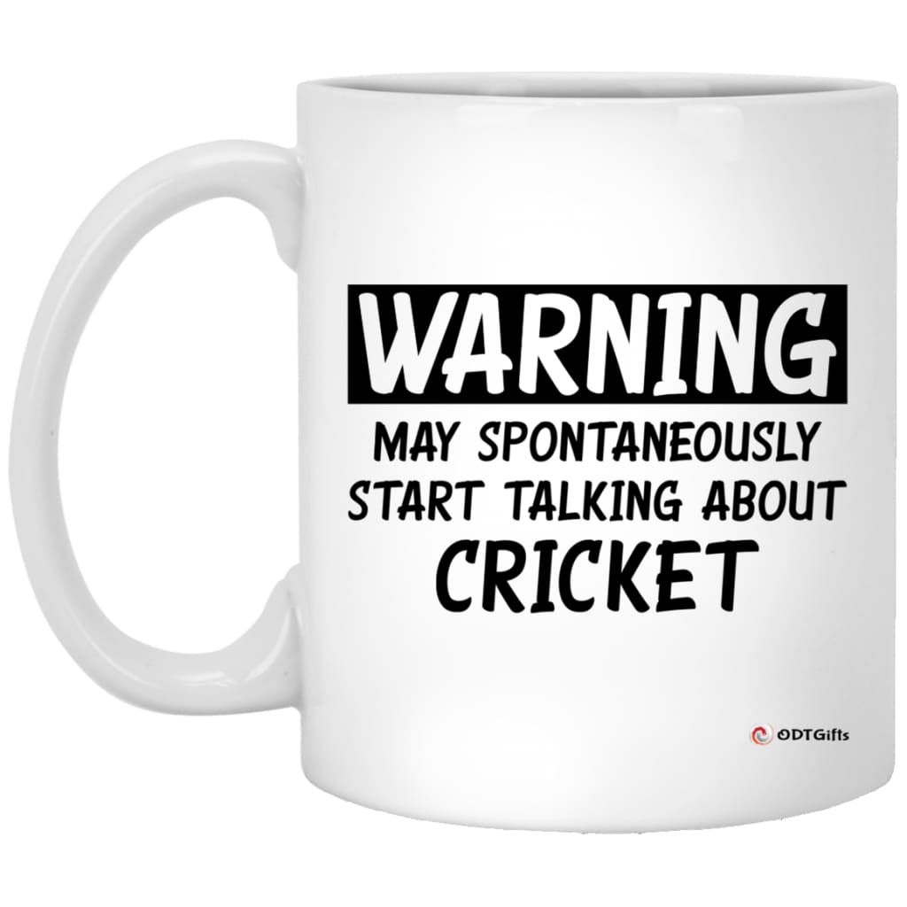 Funny Cricket Mug Gift Warning May Spontaneously Start Talking About Cricket Coffee Cup 11oz White