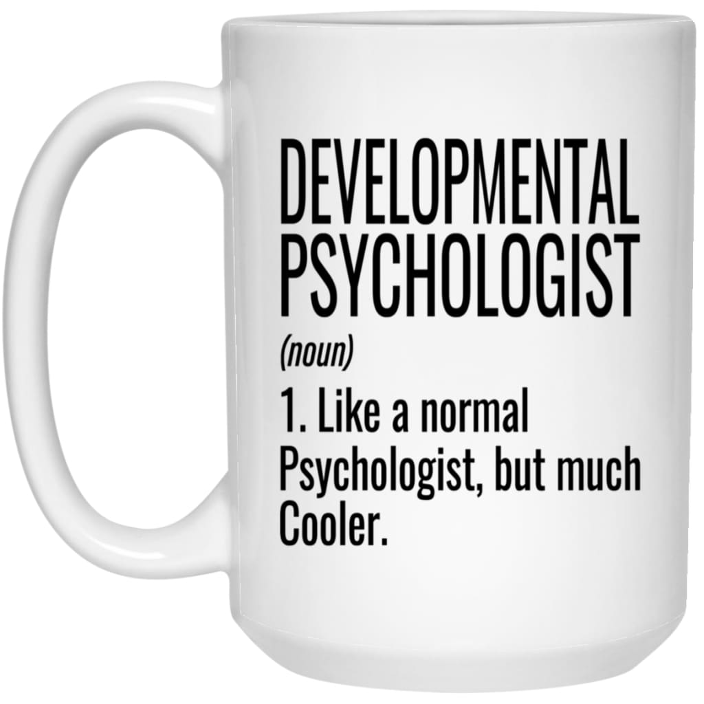 Developmental Psychologist Like A Normal Psychologist But Much Cooler Coffee Cup High quality ceramic mug Dishwasher safe Microwave safe White gloss 15 oz Decorated with full wrap dye sublimation