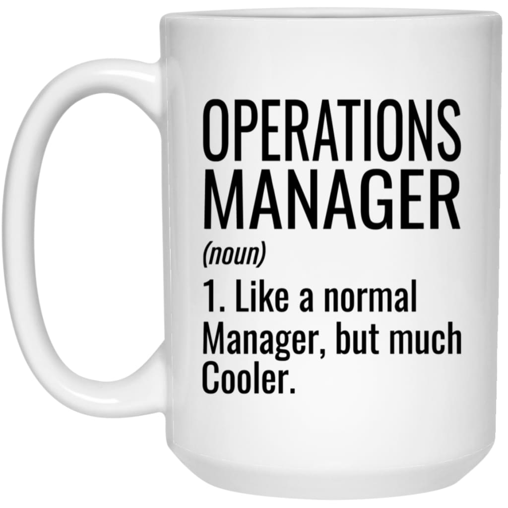 Funny Operations Manager Mug Gift Like A Normal Manager But Much Cooler Coffee Cup 15oz White  High quality 15oz white gloss ceramic mug Top to bottom full wrap decoration Microwave & Dishwasher safe ORCA Coating™ for...