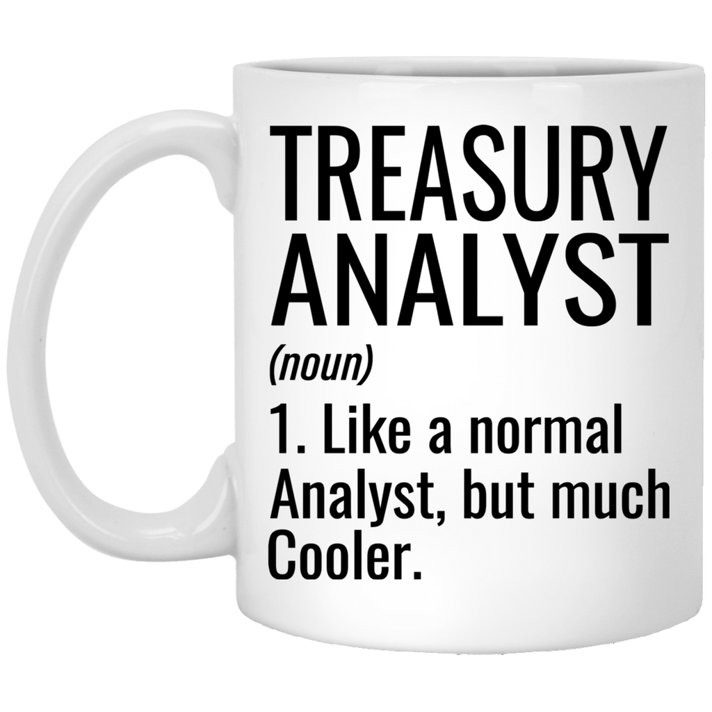 Funny Treasury Analyst Mug Gift Like A Normal Analyst But Much Cooler Coffee Cup 11oz White High quality ceramic mug Dishwasher safe Microwave safe White gloss 11 oz Decorated with full wrap dye sublimation