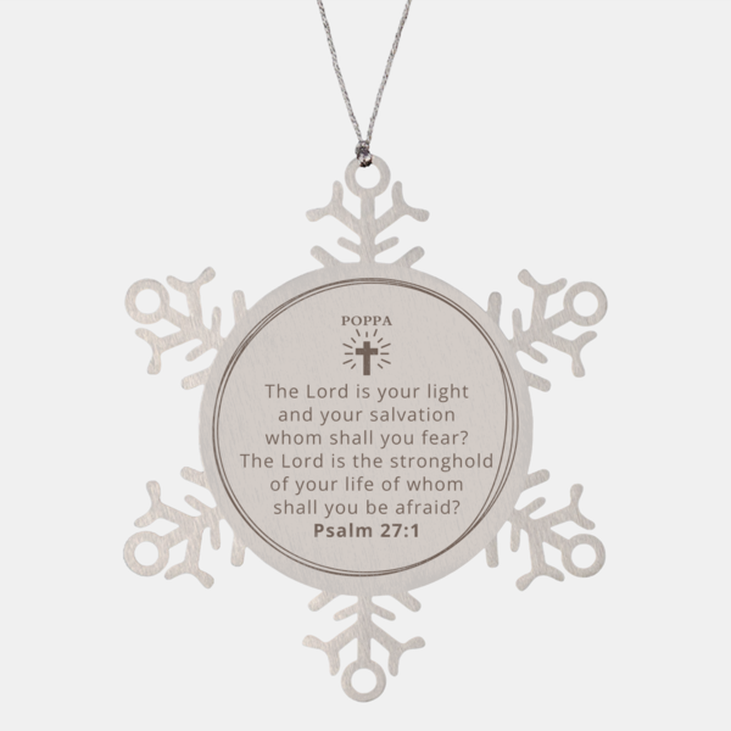 Snowflake Ornament Poppa Gift Engraved with Psalm 27:1 Inspirational Christmas Hope for Dad from Daughter Religious Holiday Decoration