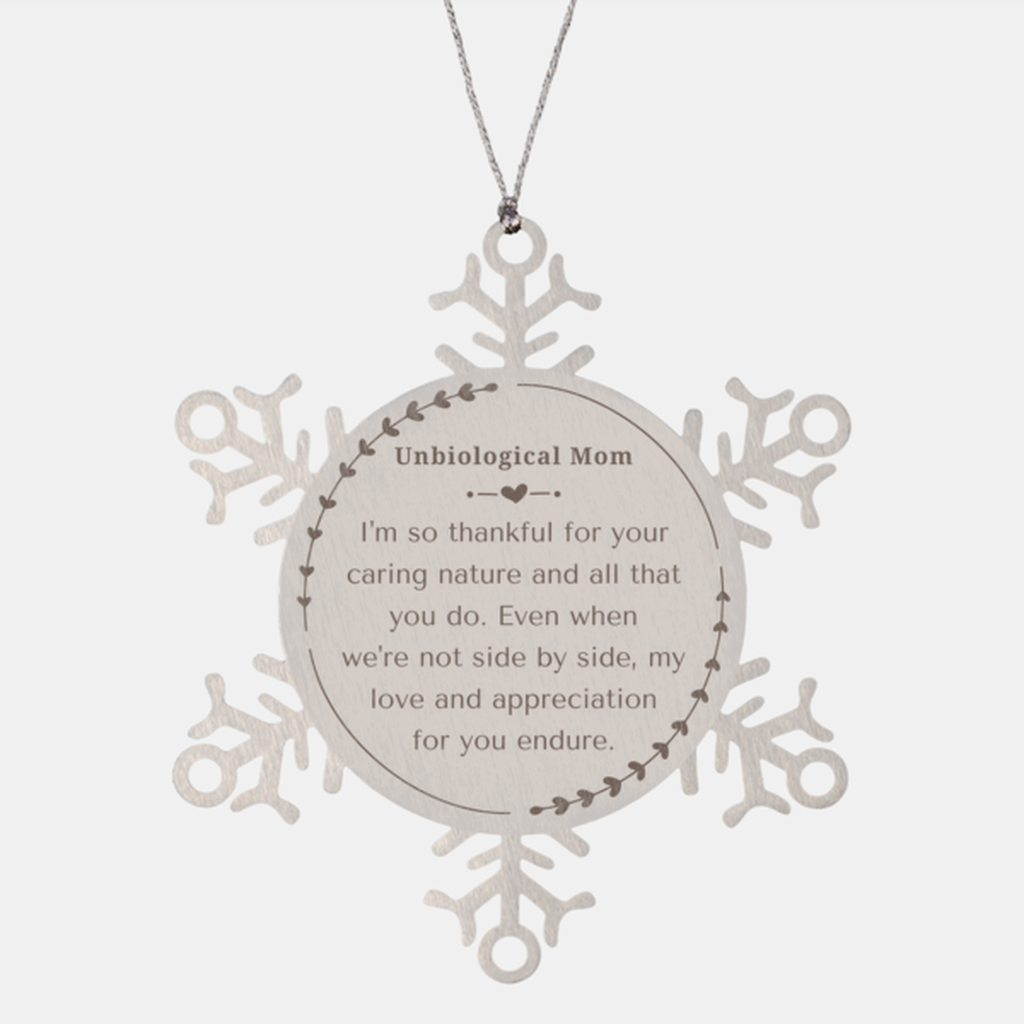 Embrace the spirit of the season with this Snowflake Unbiological Mom Ornament and infuse your holiday festivities with love and elegance. Elevate your Christmas decor with this timeless piece that embodies the true meaning of the holidays. Make your celebrations truly special with this exceptional ornament that captures the essence of Unbiological Mom.