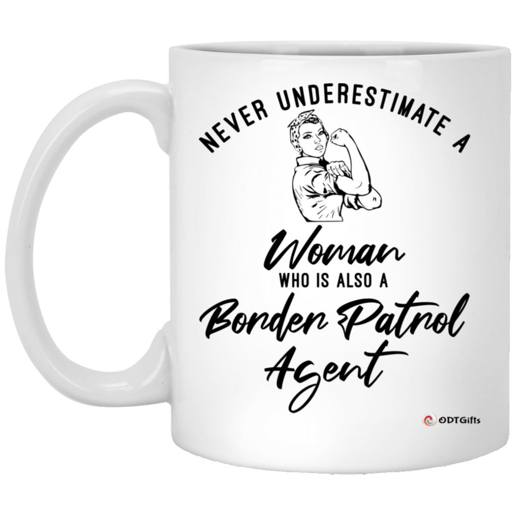 Border Patrol Agent Mug Never Underestimate A Woman Who Is Also A Border Patrol Agent Coffee Cup 11oz White High quality ceramic mug Dishwasher safe Microwave safe White gloss 11 oz Decorated with full wrap dye...