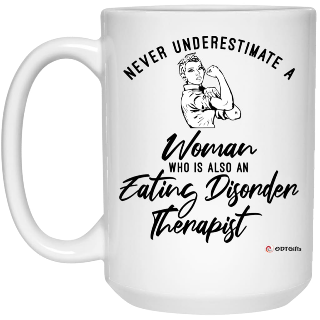 Eating Disorder Therapist Mug Never Underestimate A Woman Who Is Also An Eating Disorder Therapist Coffee Cup 15oz White High quality 15oz white gloss ceramic mug Top to bottom full wrap decoration Microwave & Dishwasher safe...