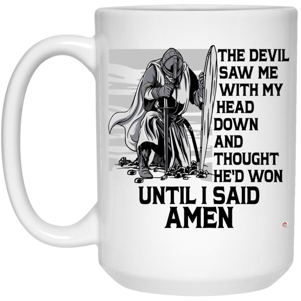 Faith Mug The Devil Saw Me With My Head Down And Thought He'd Won Until I Said Amen Coffee Cup 15oz White 21504