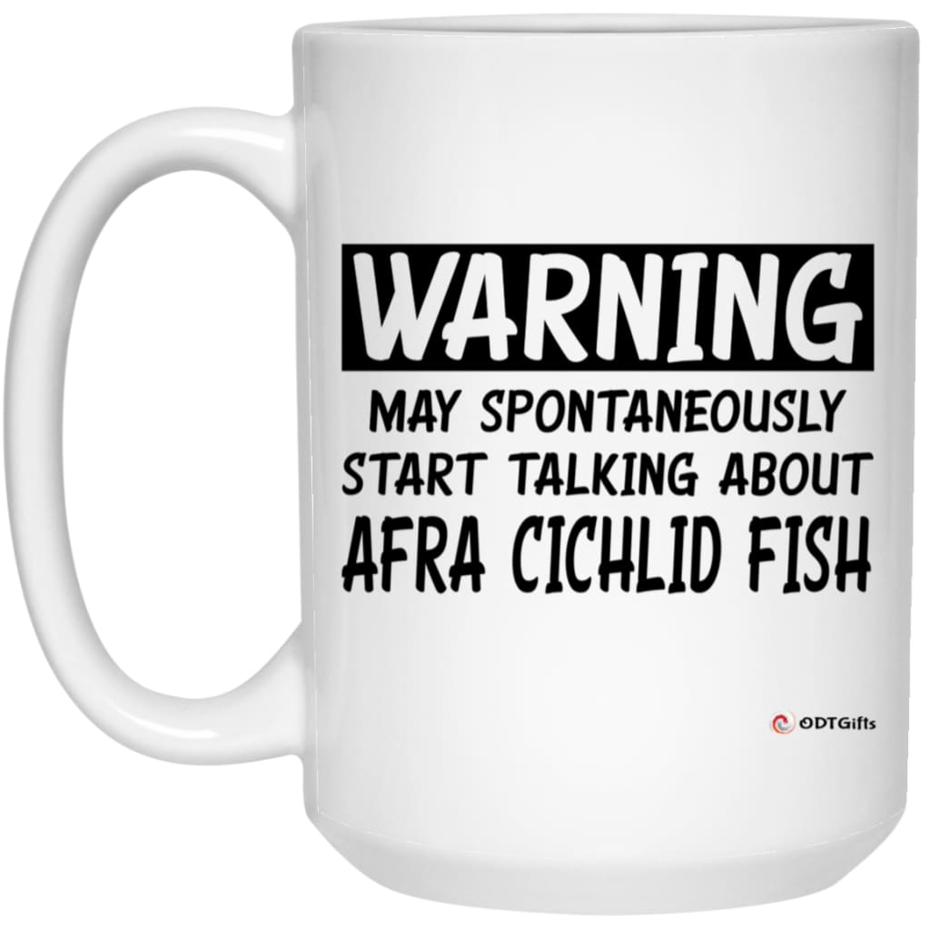 Funny Afra Cichlid Mug Warning May Spontaneously Start Talking About Afra Cichlid Fish Coffee Cup 15oz White  High quality ceramic mug Dishwasher safe Microwave safe White gloss 15 oz Decorated with full wrap dye sublimation