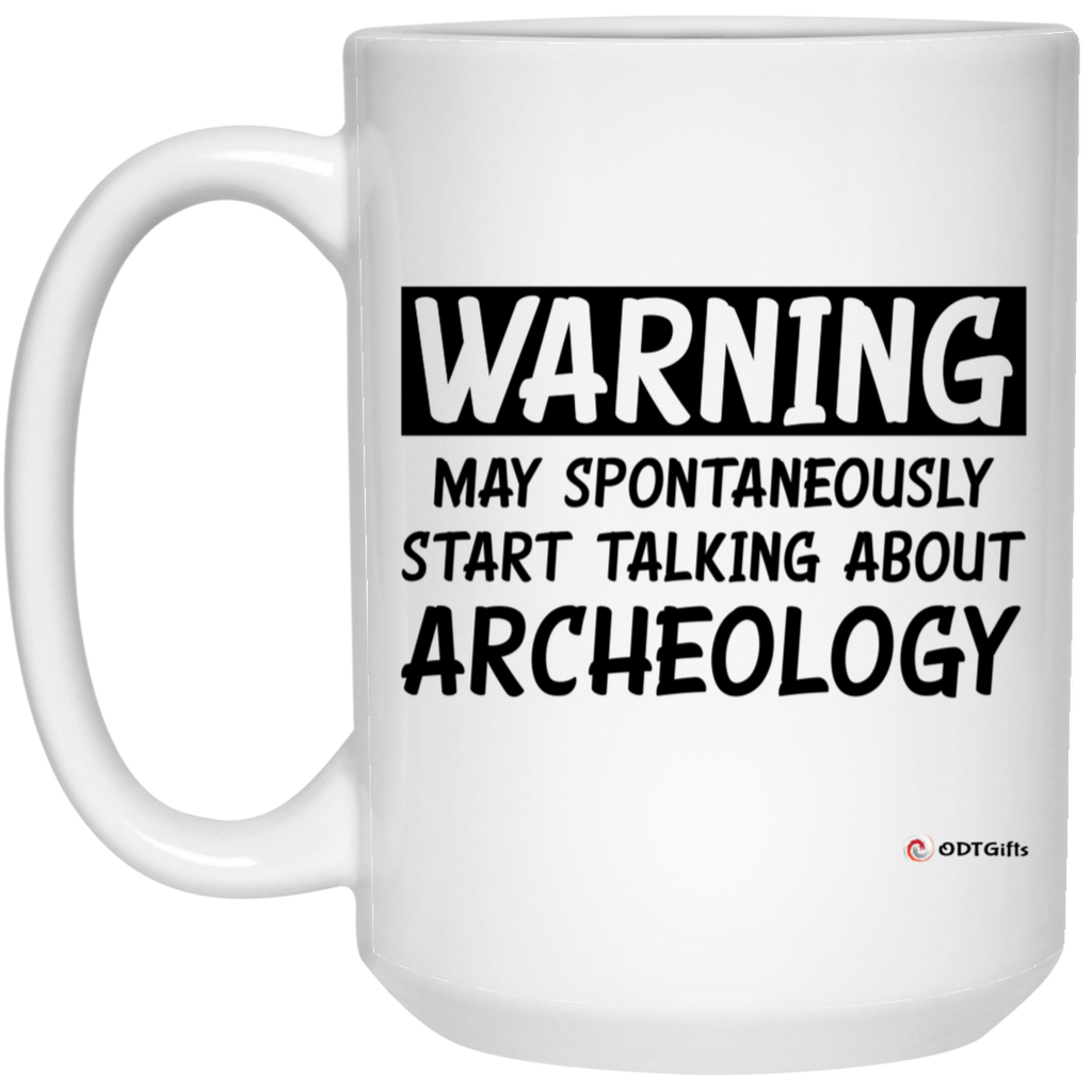 Funny Archeologist Mug Warning May Spontaneously Start Talking About Archeology Coffee Cup 15oz White 21504