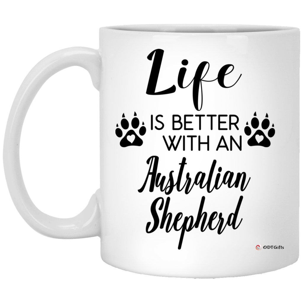 Funny Australian Shepherd Dog Mug Life Is Better With An Australian Shepherd Coffee Cup 11oz White High quality ceramic mug Dishwasher safe Microwave safe White gloss 11 oz Decorated with full wrap dye sublimation