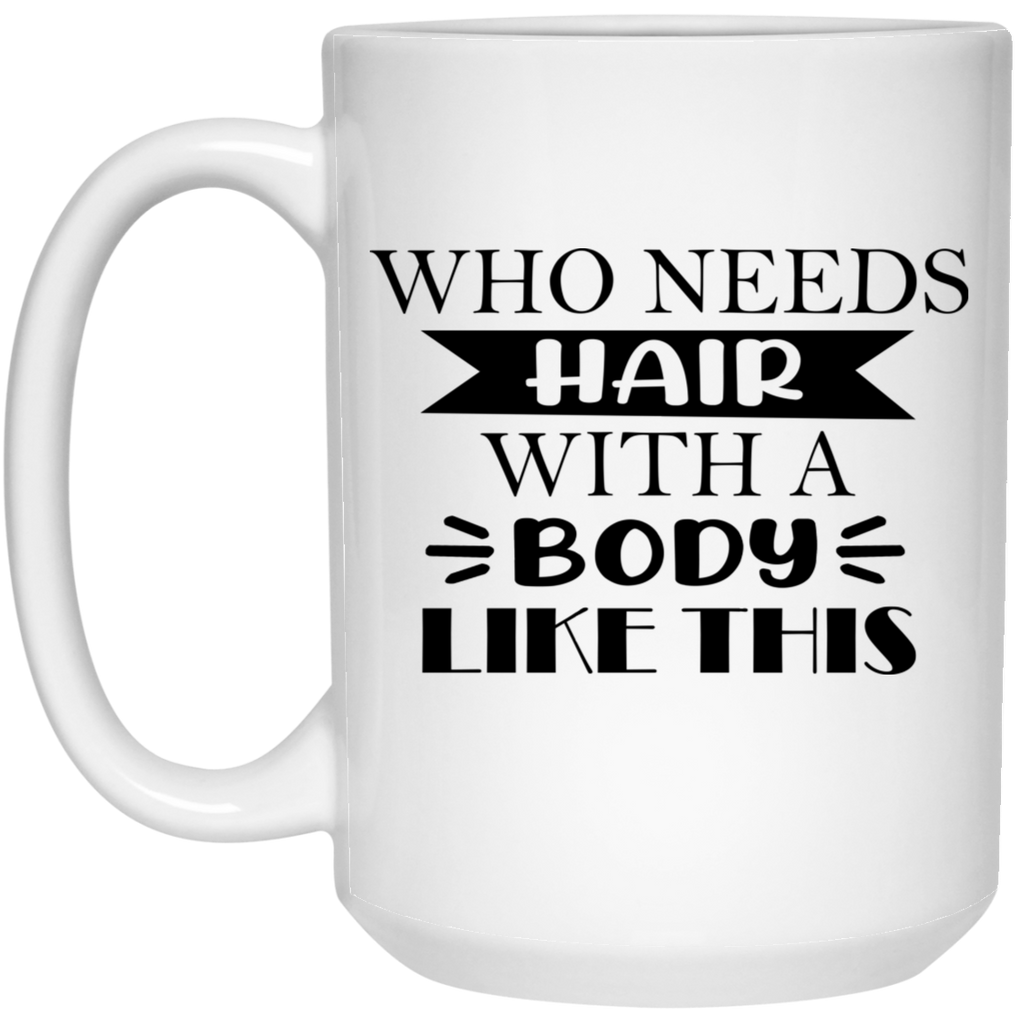 Funny Bald Shaved Heads Mug Who Needs Hair With A Body Like This Coffee Cup 15oz White 21504