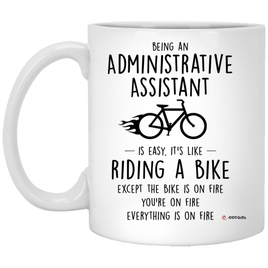 Funny Being an Administrative Assistant is Easy It's Like Riding A Bike Except Coffee Mug 11oz White  High quality ceramic mug Dishwasher safe Microwave safe White gloss 11 oz Decorated with full wrap dye sublimation