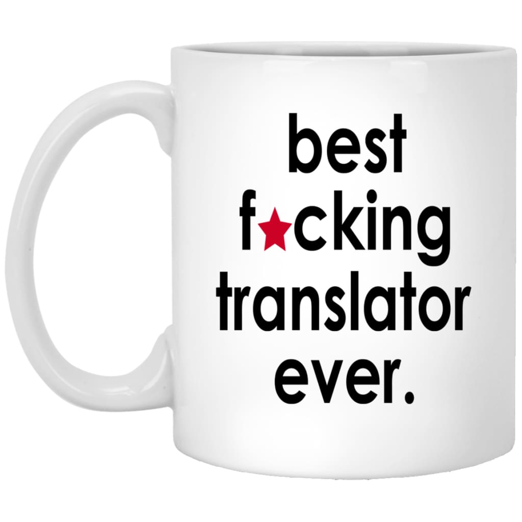 Funny Best F-cking Translator Ever Coffee Mug 11oz White  High quality ceramic mug Dishwasher safe Microwave safe White gloss 11 oz Decorated with full wrap dye sublimation
