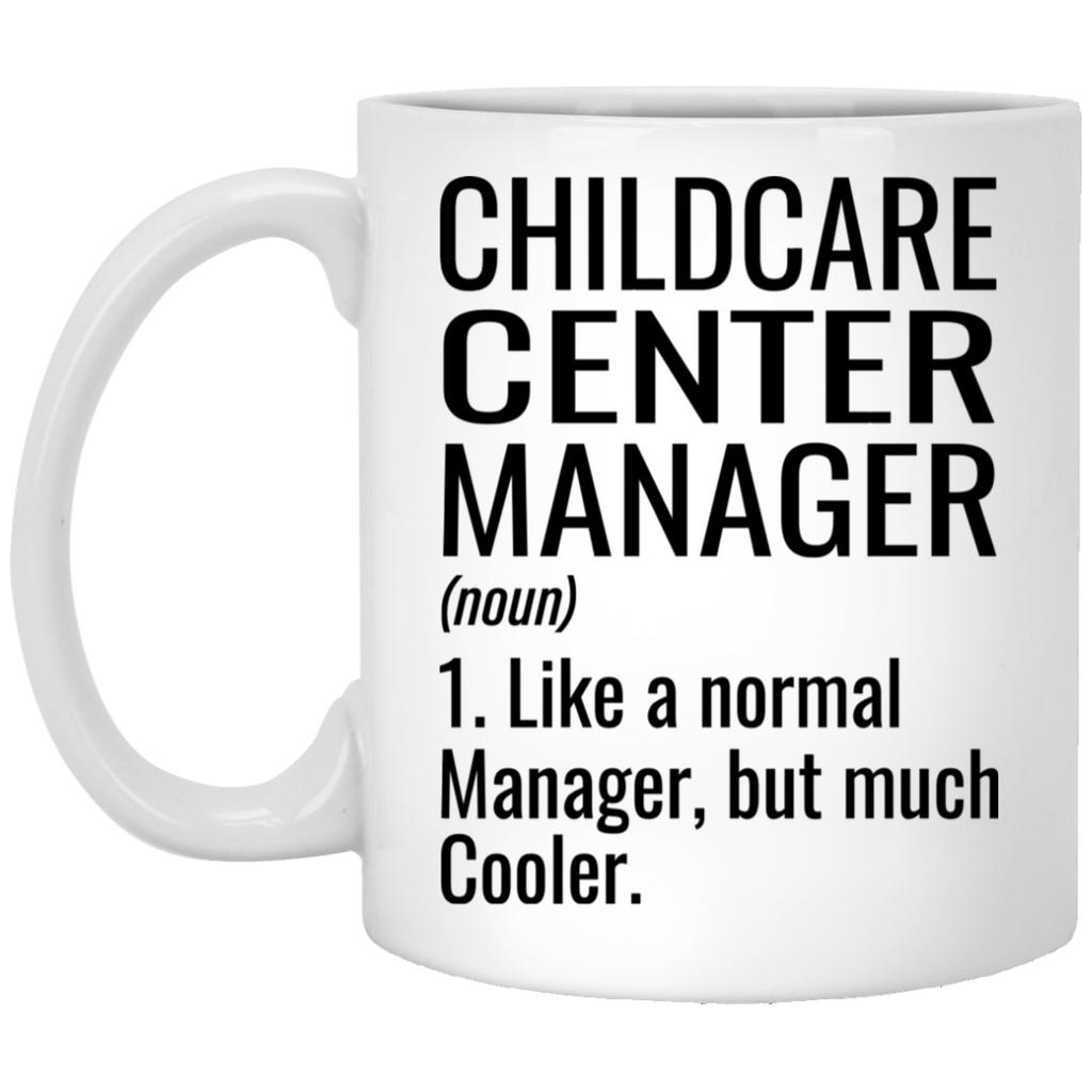 Funny Childcare Center Manager Mug Like A Normal Manager But Much Cooler Coffee Cup 11oz White High quality ceramic mug Dishwasher safe Microwave safe White gloss 11 oz Decorated with full wrap dye sublimation