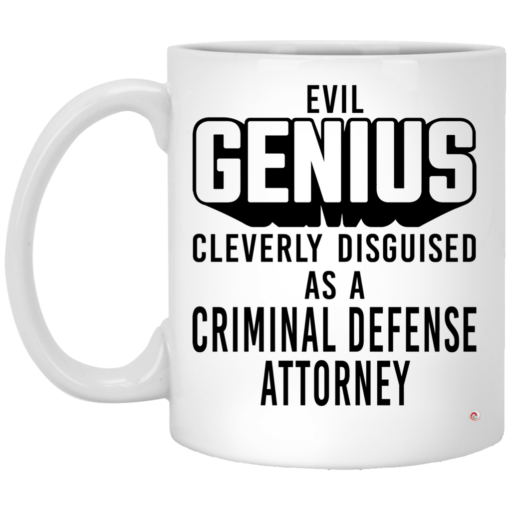 Funny Criminal Defense Attorney Mug Evil Genius Cleverly Disguised As A Criminal Defense Attorney Coffee Cup 11oz White High quality ceramic mug Dishwasher safe Microwave safe White gloss 11 oz Decorated with full wrap dye sublimation...