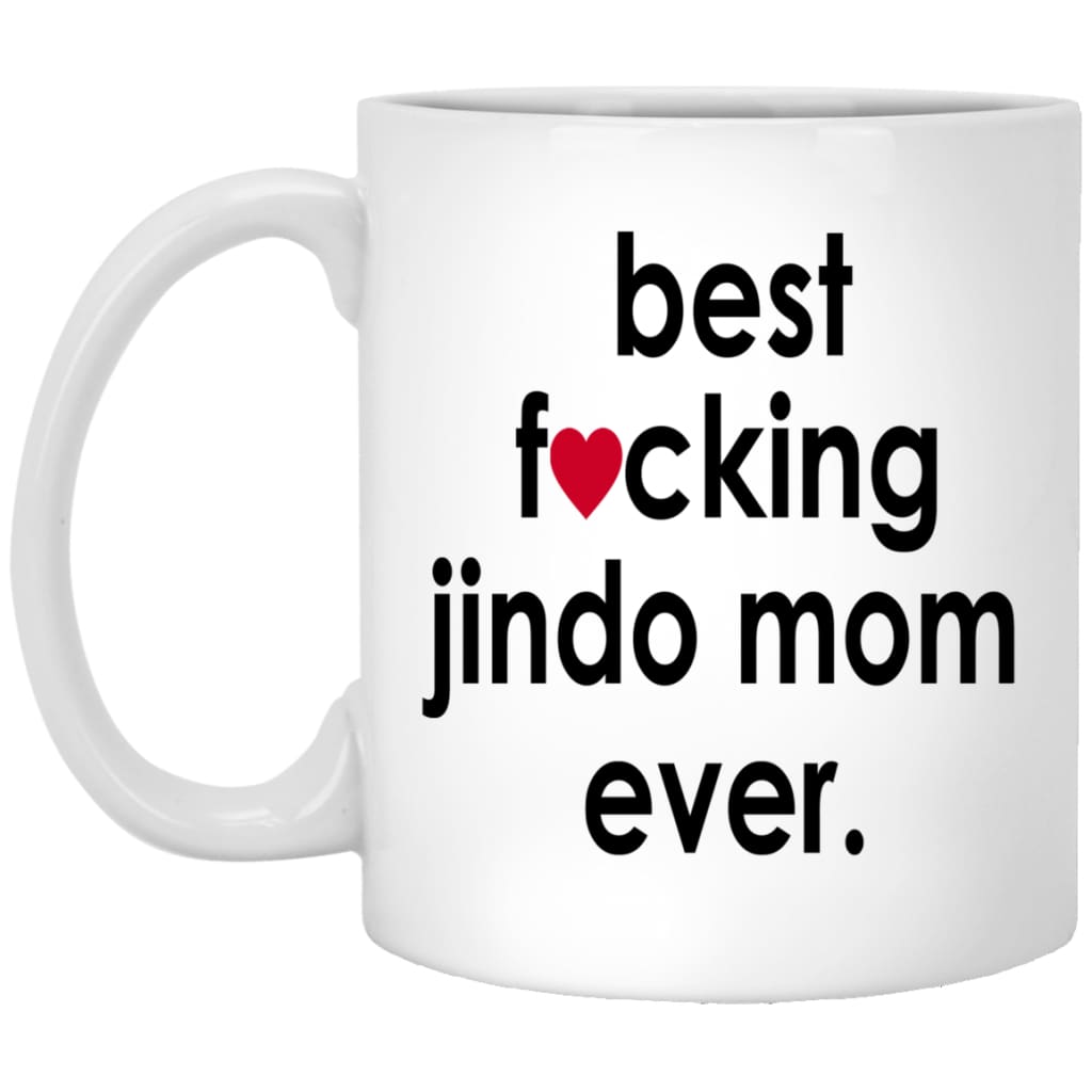 Funny Dog Mug Best F-cking Jindo Mom Ever Coffee Mug White High quality ceramic mug Dishwasher safe Microwave safe White gloss 11 oz Decorated with full wrap dye sublimation