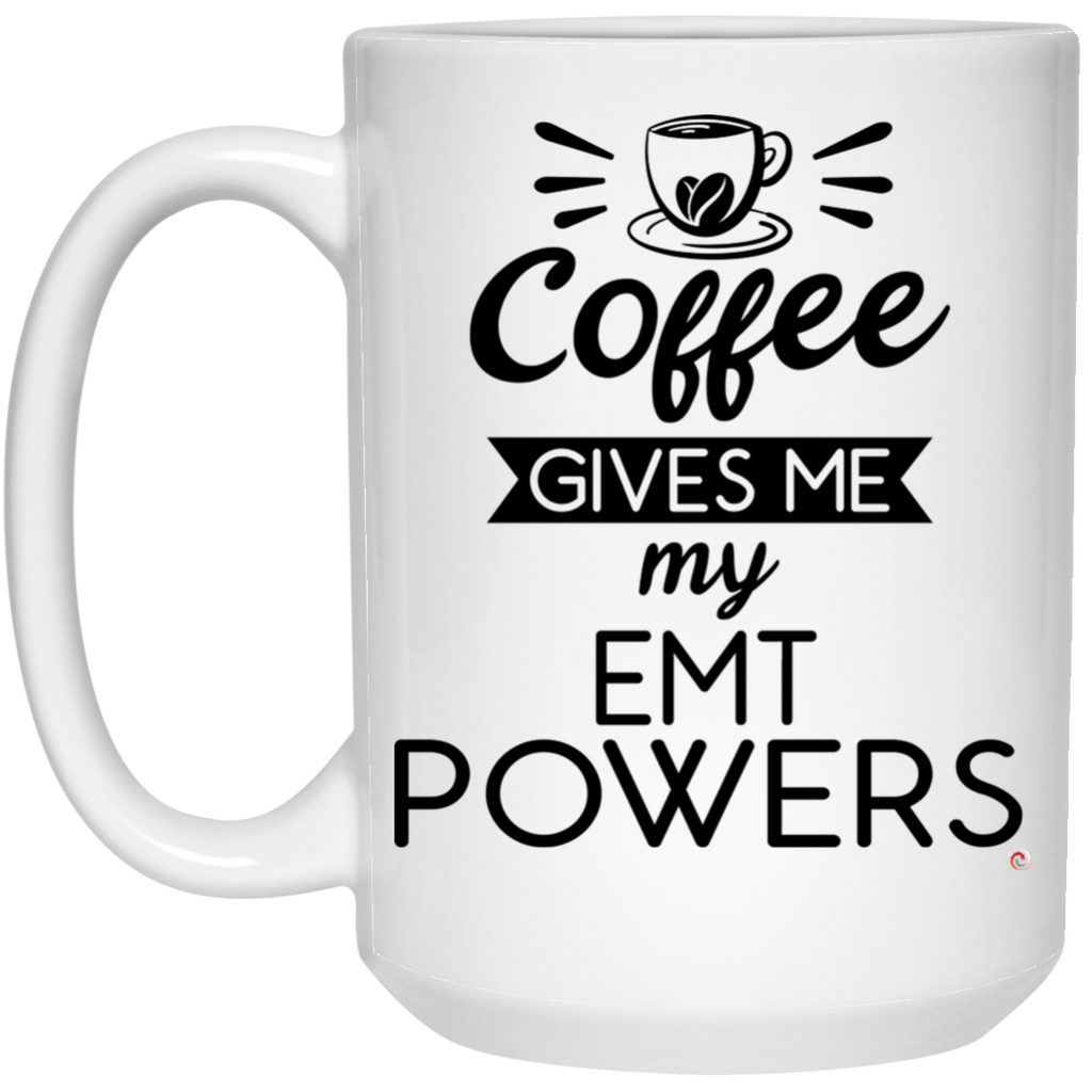Funny EMT Mug Coffee Gives Me My EMT Powers Coffee Cup 15oz White High quality 15oz white gloss ceramic mug Top to bottom full wrap decoration Microwave & Dishwasher safe ORCA Coating™ for maximum print vibrancy...