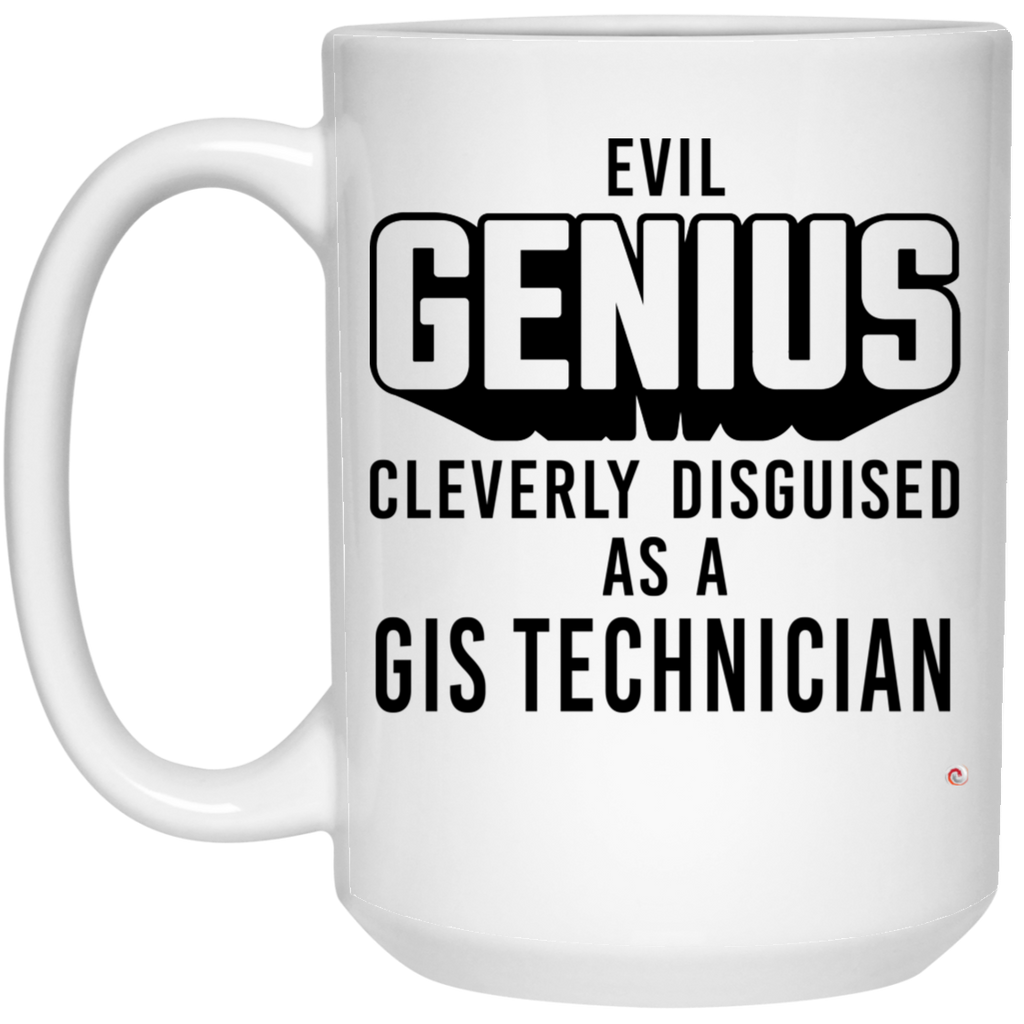Funny GIS Technician Mug Evil Genius Cleverly Disguised As A GIS Technician Coffee Cup 15oz White  High quality 15oz white gloss ceramic mug Top to bottom full wrap decoration Microwave & Dishwasher safe ORCA Coating™ for...