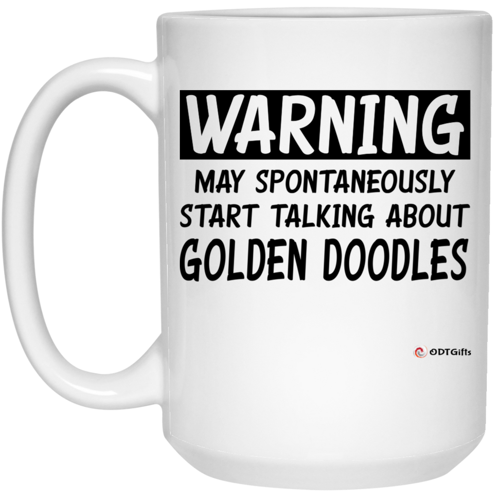 Funny Golden Doodle Mug Warning May Spontaneously Start Talking About Golden Doodles Coffee Cup 15oz White 21504