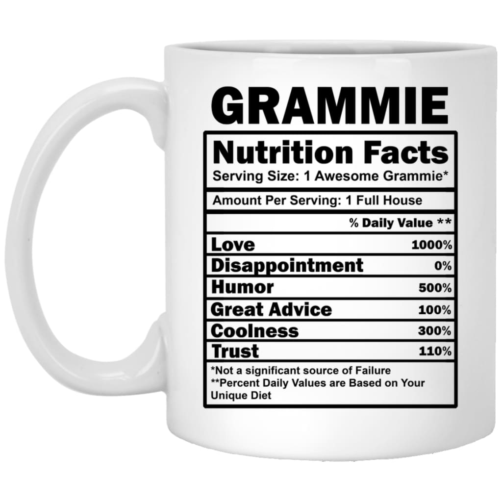 Funny Grammie Mug Nutrition Facts Coffee Cup 11oz White High quality ceramic mug Dishwasher safe Microwave safe White gloss 11 oz Decorated with full wrap dye sublimation