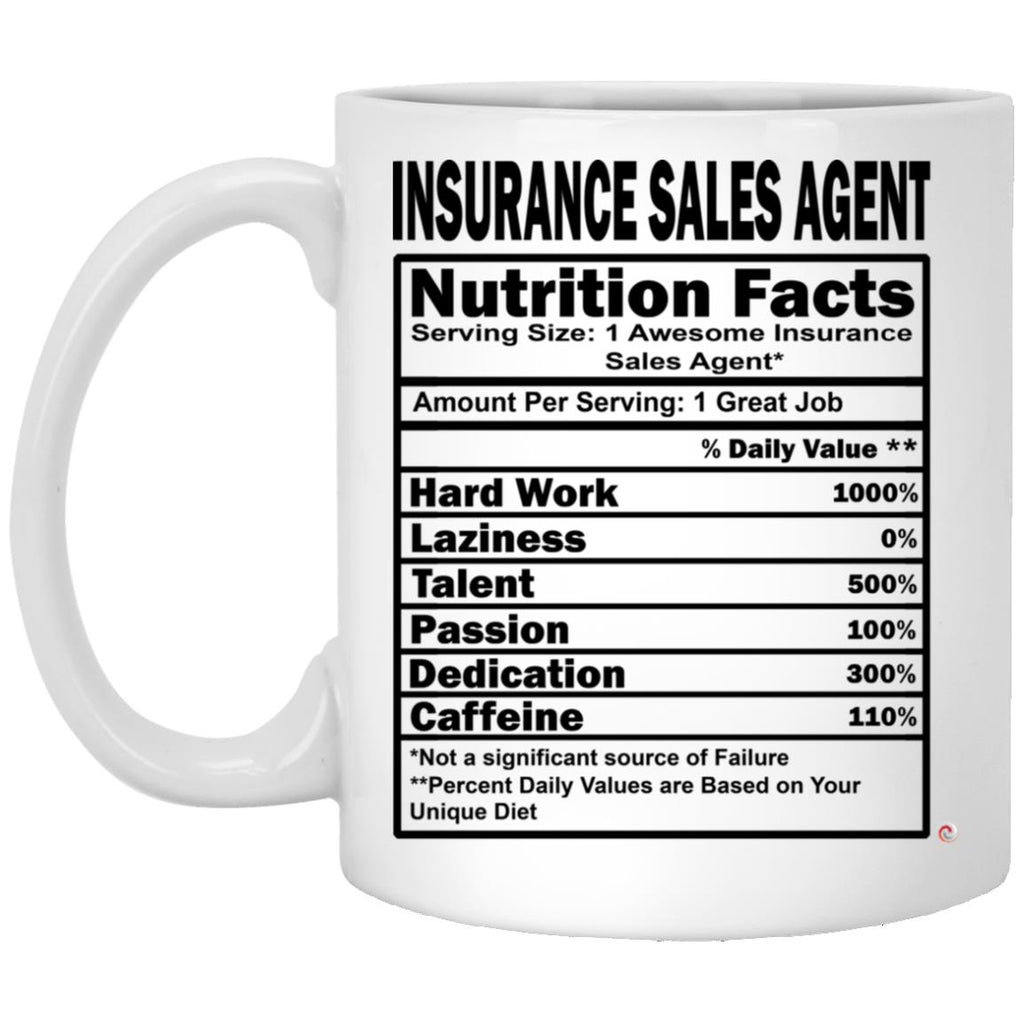 Funny Insurance Sales Agent Nutritional Facts Coffee Cup 11oz White High quality ceramic mug Dishwasher safe Microwave safe White gloss 11 oz Decorated with full wrap dye sublimation