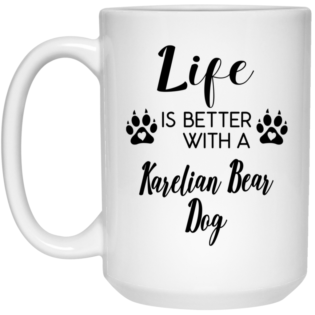 Funny Karelian Bear Dog Mug Life Is Better With A Karelian Bear Dog Coffee Cup 15oz White High quality ceramic mug Dishwasher safe Microwave safe White gloss 15 oz Decorated with full wrap dye sublimation