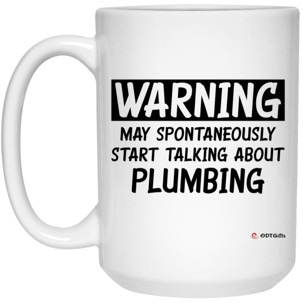 Funny Plumber Mug Warning May Spontaneously Start Talking About Plumbing Coffee Cup 15oz White High quality ceramic mug Dishwasher safe Microwave safe White gloss 15 oz Decorated with full wrap dye sublimation