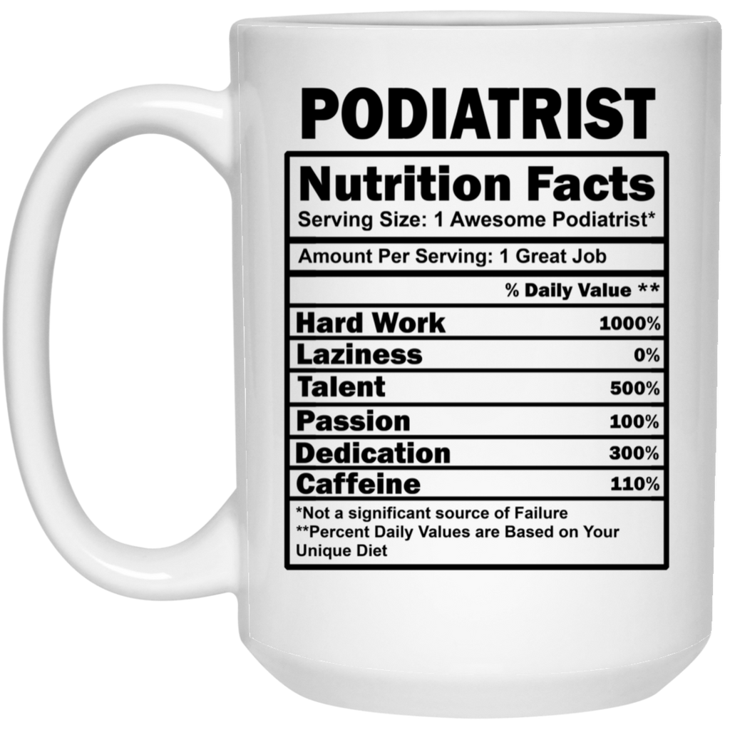 Funny Podiatrist Mug Nutrition Facts Coffee Cup 15oz White  High quality ceramic mug Dishwasher safe Microwave safe White gloss 15 oz Decorated with full wrap dye sublimation
