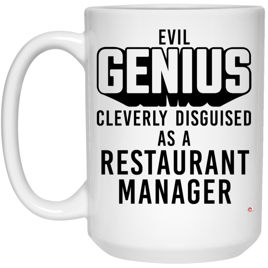 Funny Restaurant Manager Mug Evil Genius Cleverly Disguised As A Restaurant Manager Coffee Cup 15oz White  High quality 15oz white gloss ceramic mug Top to bottom full wrap decoration Microwave & Dishwasher safe ORCA Coating™ for...