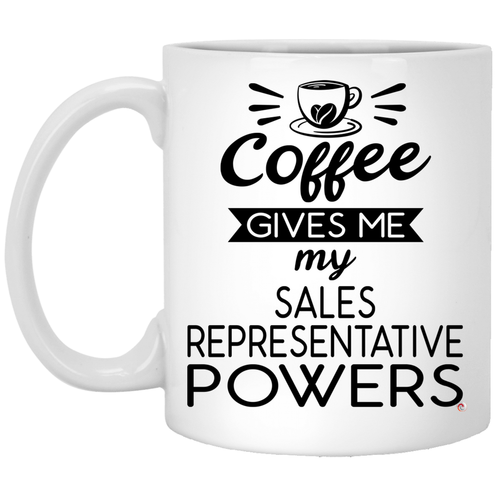 Funny Sales Representative Mug Coffee Gives Me My Sales Representative Powers Coffee Cup 11oz White High quality ceramic mug Dishwasher safe Microwave safe White gloss 11 oz Decorated with full wrap dye sublimation
