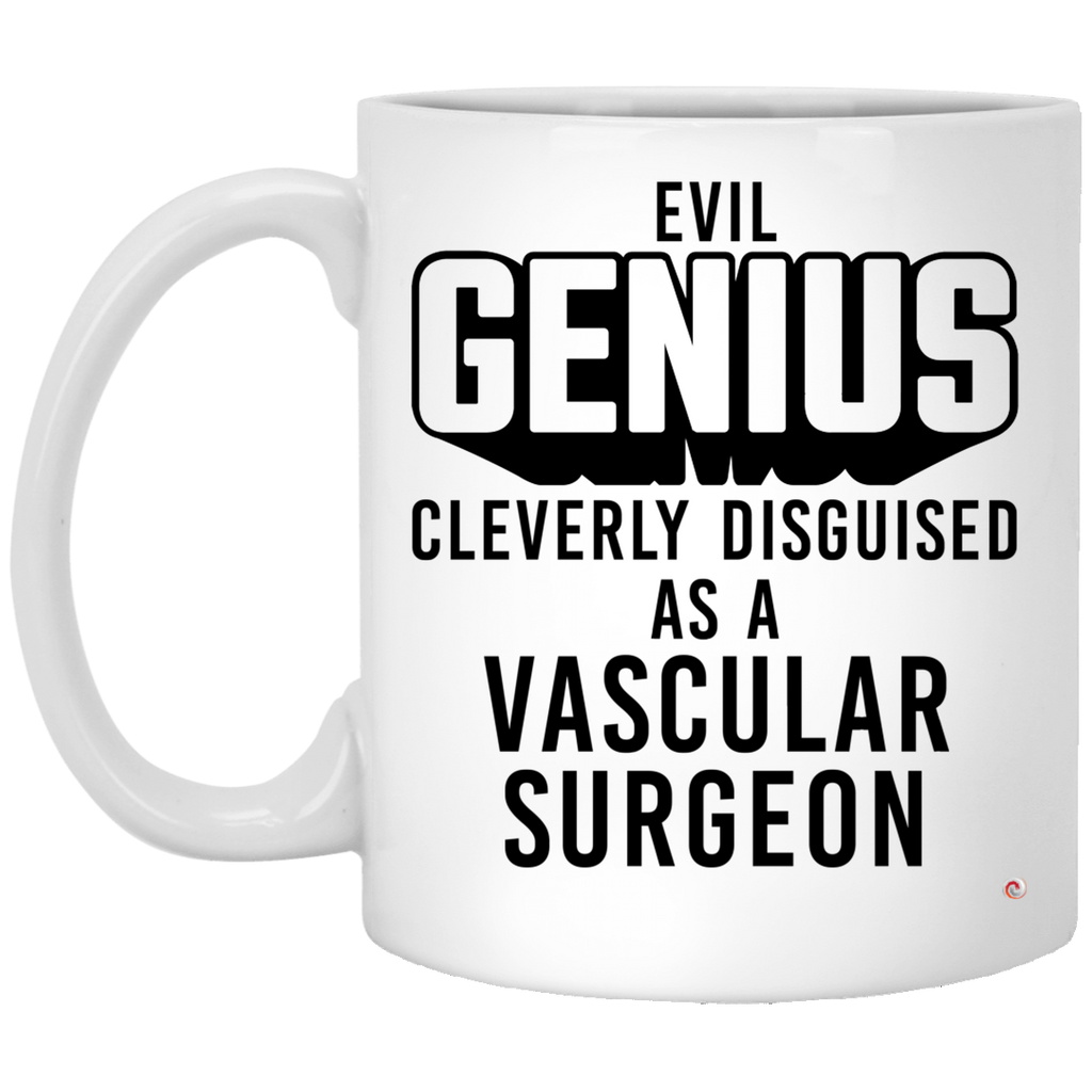 Funny Vascular Surgeon Mug Evil Genius Cleverly Disguised As A Vascular Surgeon Coffee Cup 11oz White High quality ceramic mug Dishwasher safe Microwave safe White gloss 11 oz Decorated with full wrap dye sublimation