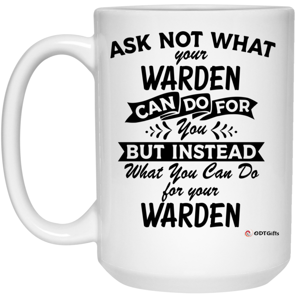 Funny Warden Mug Ask Not What Your Warden Can Do For You Coffee Cup 15oz White High quality 15oz white gloss ceramic mug Top to bottom full wrap decoration Microwave & Dishwasher safe ORCA Coating™ for...