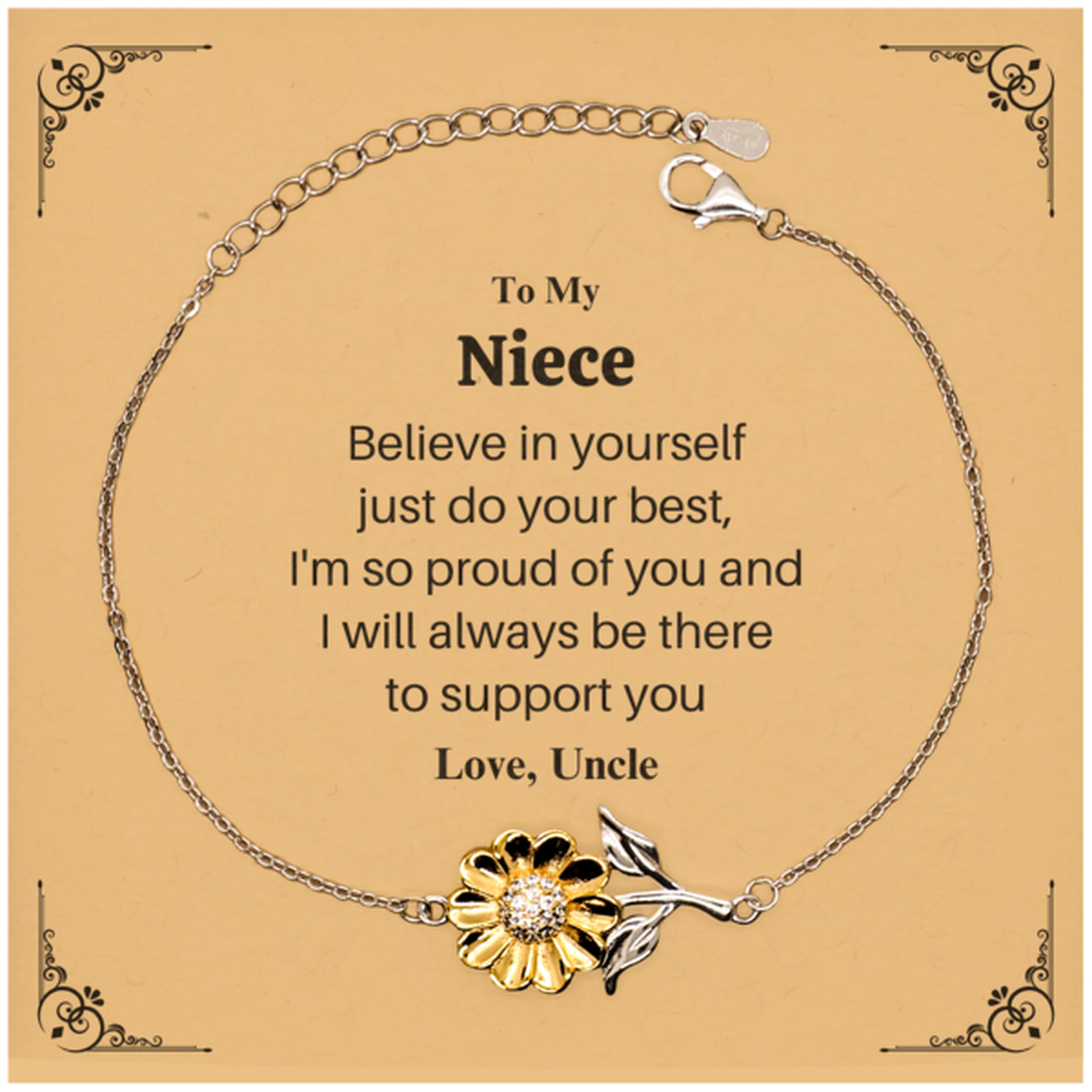 Sunflower Bracelet for Niece - Believe in Yourself - Engraved Inspirational Gift from Uncle - Birthday, Graduation, Holidays - Supportive and Unique Jewelry to Boost Confidence and Hope
