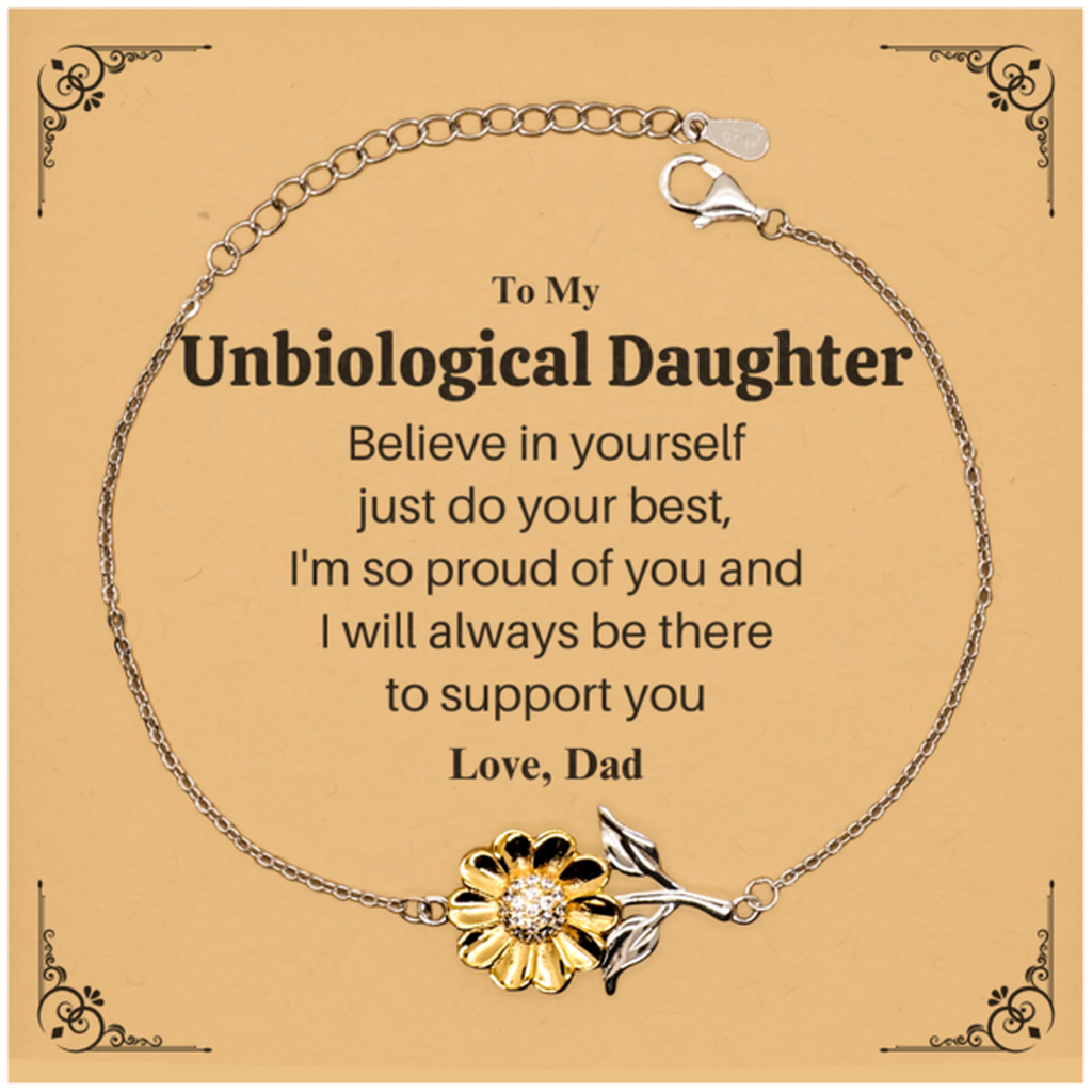 Embrace the spirit of the sunflower and let this Unbiological Daughter bracelet illuminate your special moments. Brighten someone's day with this meaningful token of affection.