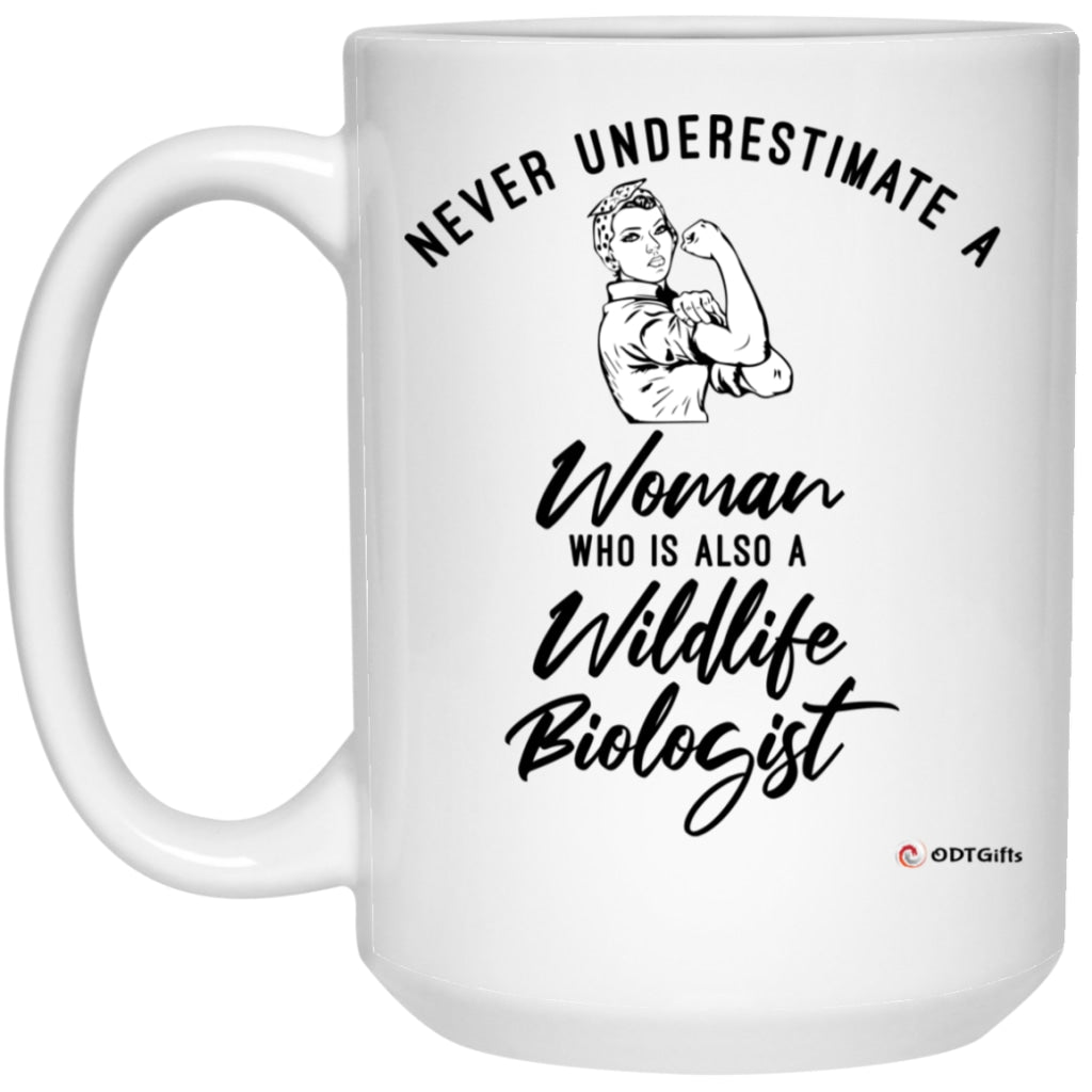 Wildlife Biologist Mug Never Underestimate A Woman Who Is Also A Wildlife Biologist Coffee Cup 15oz White 21504