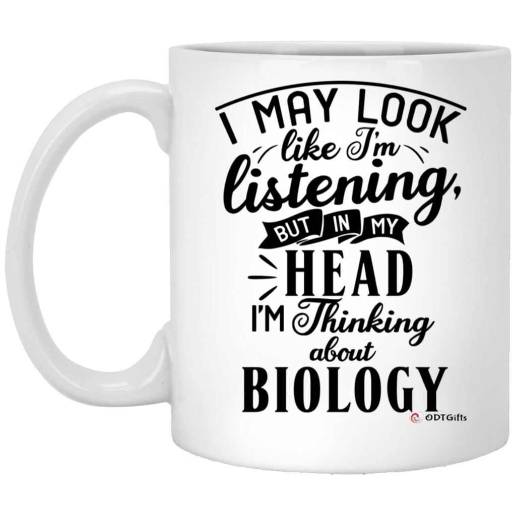 Funny Biologist Mug I May Look Like I'm Listening But In My Head I'm Thinking About Biology Coffee Cup 11oz White High quality white gloss 11oz ceramic mug Dishwasher safe & Microwave safe Top-to-bottom full wrap...