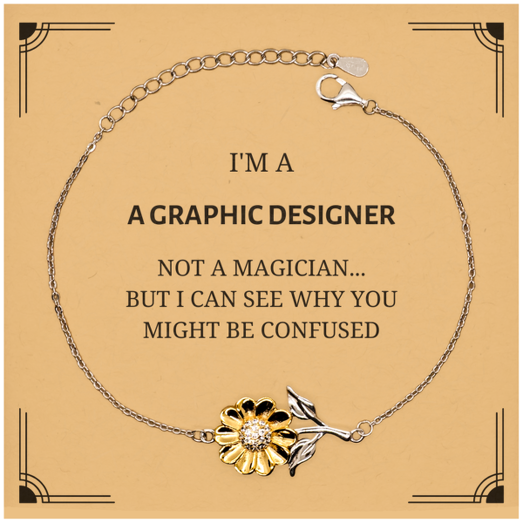 Badass Graphic Designer Gifts, I'm Graphic Designer not a magician, Sarcastic Sunflower Bracelet for Graphic Designer Birthday Christmas for Men, Women, Friends, Coworkers
