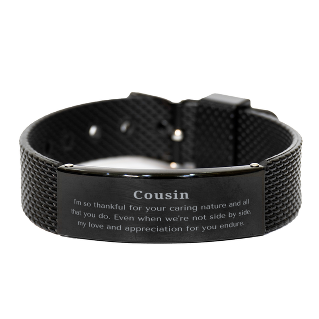 Black Shark Mesh Bracelet for Cousin - Unique Thankful Gift for Birthday, Christmas, and Graduation - Your Caring Nature Endures - Engraved Appreciation and Love
