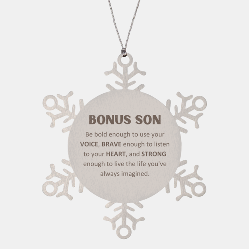 Embrace the spirit of the season with this Snowflake Bonus Son Ornament and infuse your holiday festivities with love and elegance. Elevate your Christmas decor with this timeless piece that embodies the true meaning of the holidays. Make your celebrations truly special with this exceptional ornament that captures the essence of Bonus Son.
