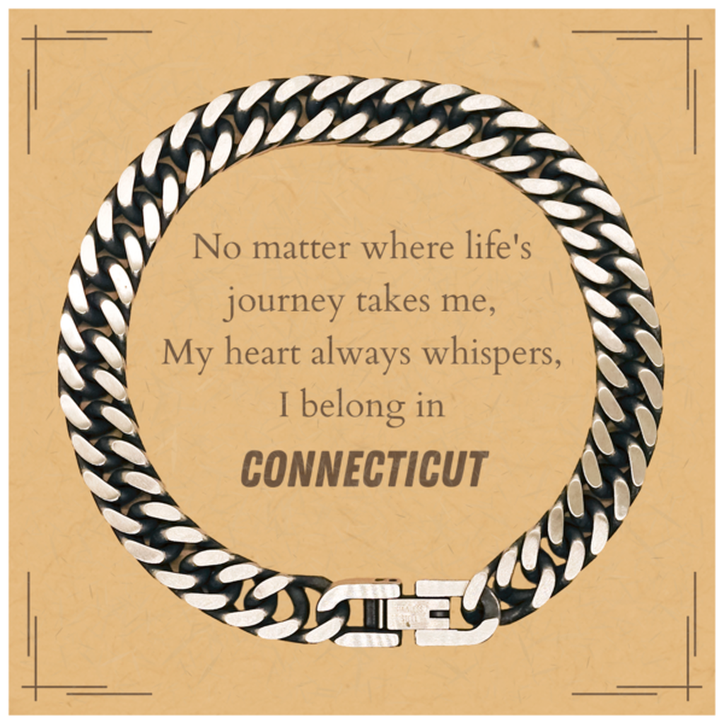 Connecticut State Gifts, No matter where life's journey takes me, my heart always whispers, I belong in Connecticut, Proud Connecticut Cuban Link Chain Bracelet Birthday Christmas For Men, Women, Friends