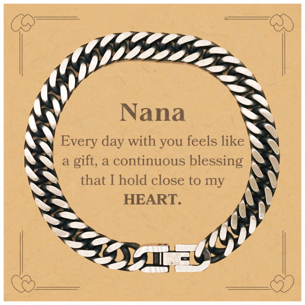 Surprise and delight your special gentleman with a gift that combines style, quality, and sentiment. Elevate his style with this Nana Stainless Steel Cuban Link Chain Bracelet and make every moment memorable.