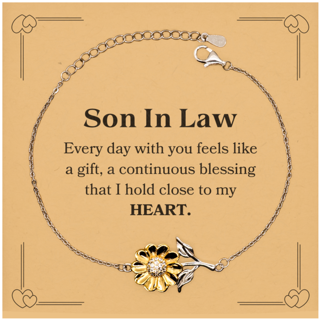 Cute Son In Law Gifts, Every day with you feels like a gift, Lovely Son In Law Sunflower Bracelet, Birthday Christmas Unique Gifts For Son In Law