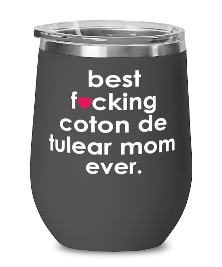 Funny Coton De Tulear Dog Wine Glass B3st F-cking Coton De Tulear Mom Ever 12oz Stainless Steel Black