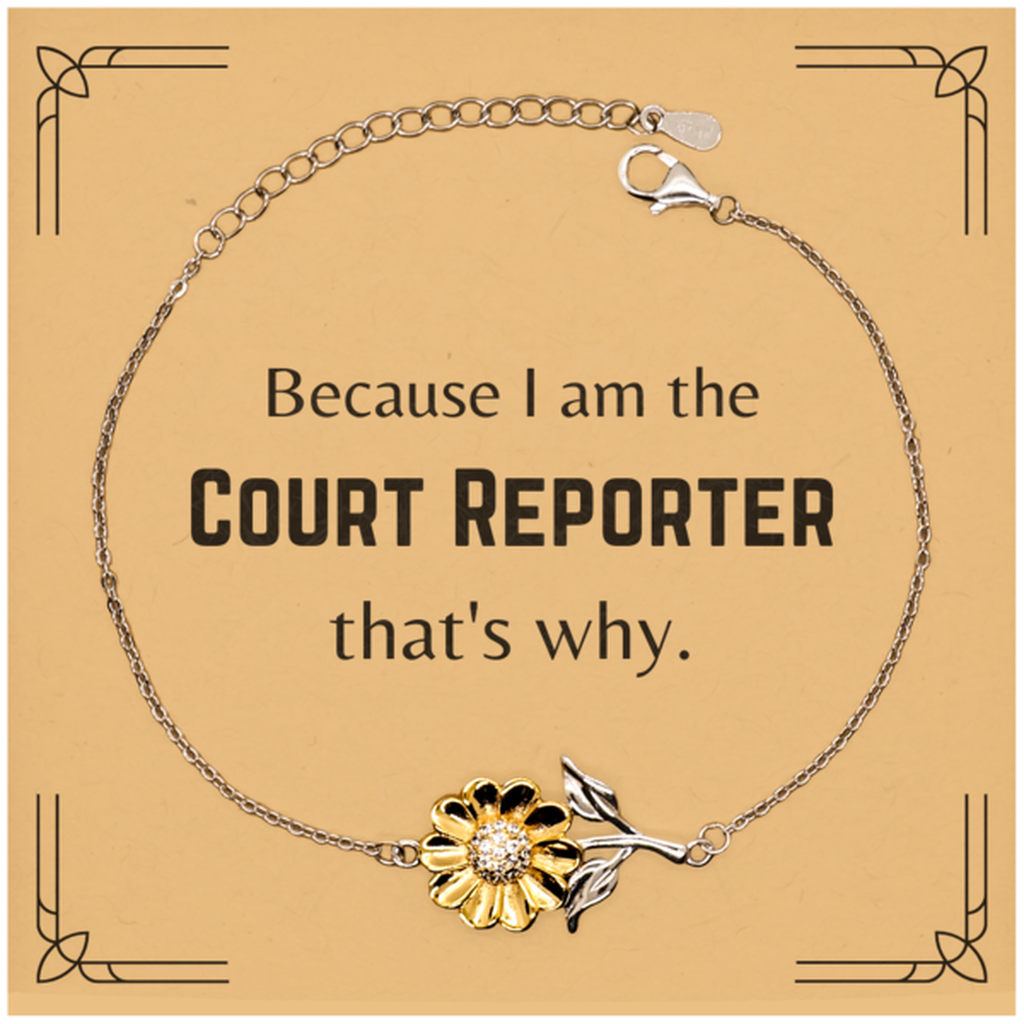 Funny Court Reporter Gifts, Because I am the Court Reporter, Appreciation Gifts for Court Reporter, Birthday Sunflower Bracelet For Men, Women, Friends