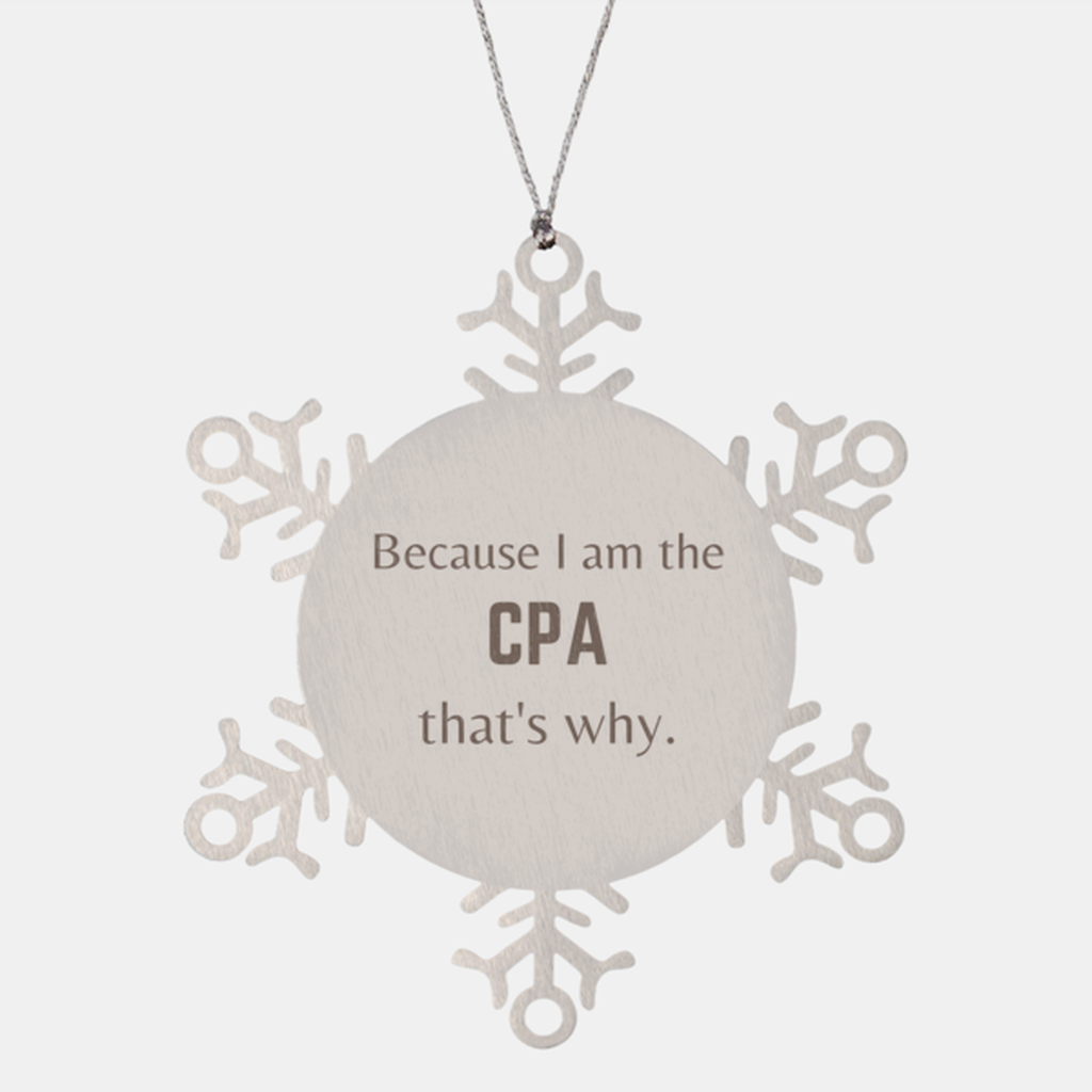 Funny CPA Gifts, Because I am the CPA, Appreciation Gifts for CPA, Birthday Snowflake Ornament For Men, Women, Friends