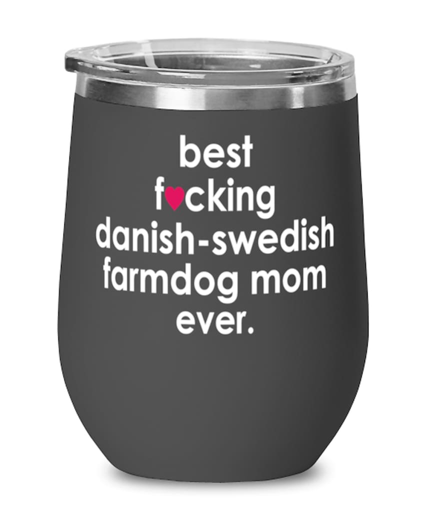 Funny Danish-Swedish FarmDog Wine Glass B3st F-cking Danish-Swedish Farmdog Mom Ever 12oz Stainless Steel Black