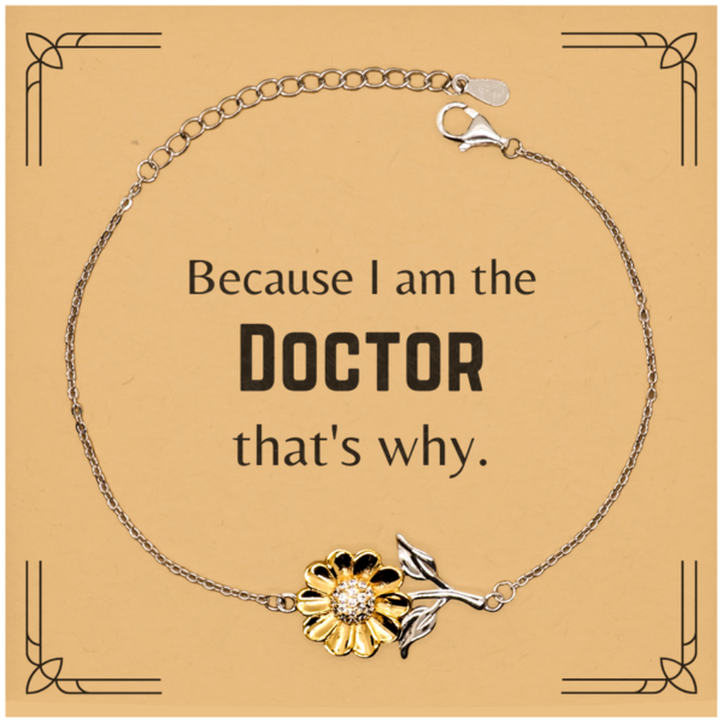 Funny Doctor Gifts, Because I am the Doctor, Appreciation Gifts for Doctor, Birthday Sunflower Bracelet For Men, Women, Friends