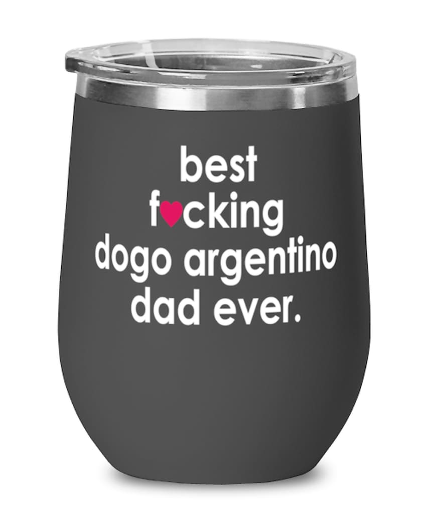 Funny Dogo Argentino Dog Wine Glass B3st F-cking Dogo Argentino Dad Ever 12oz Stainless Steel Black