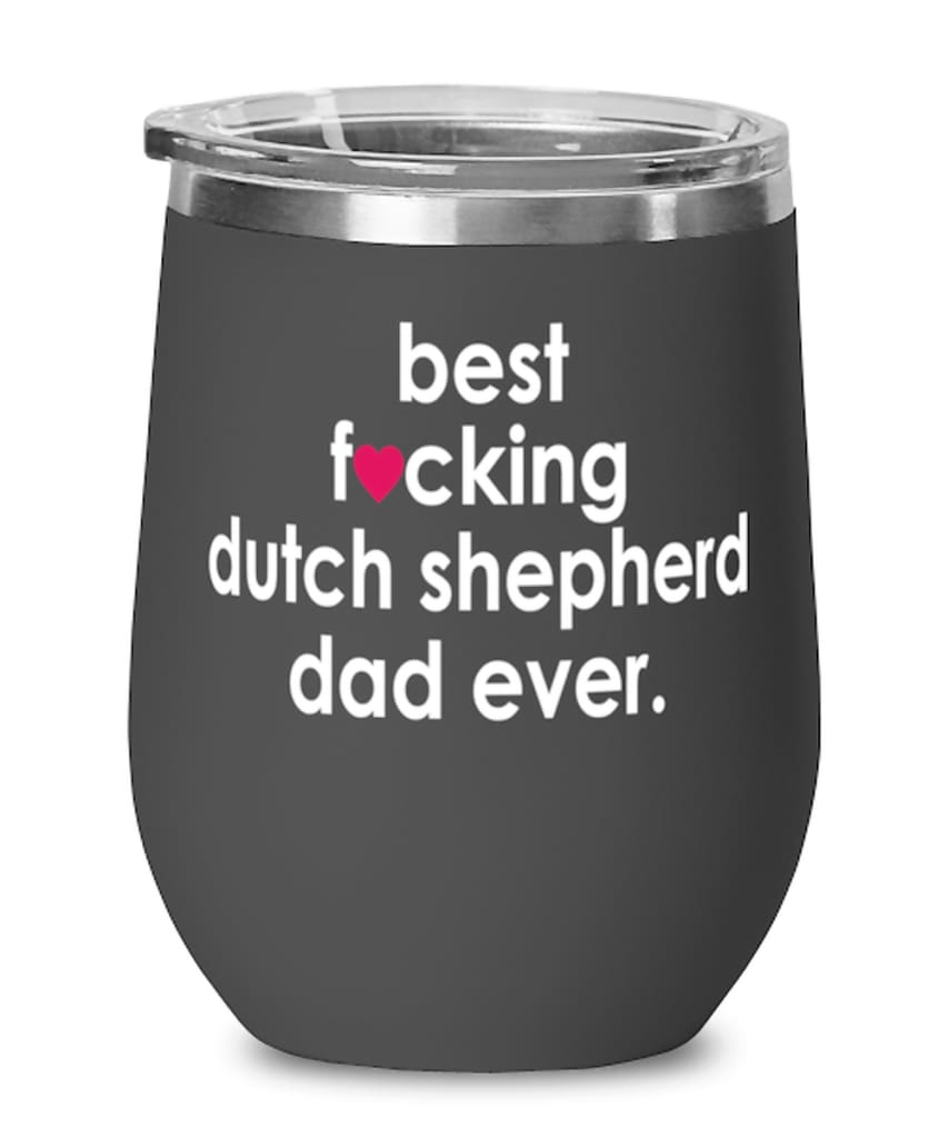 Funny Dutch Shepherd Dog Wine Glass B3st F-cking Dutch Shepherd Dad Ever 12oz Stainless Steel Black