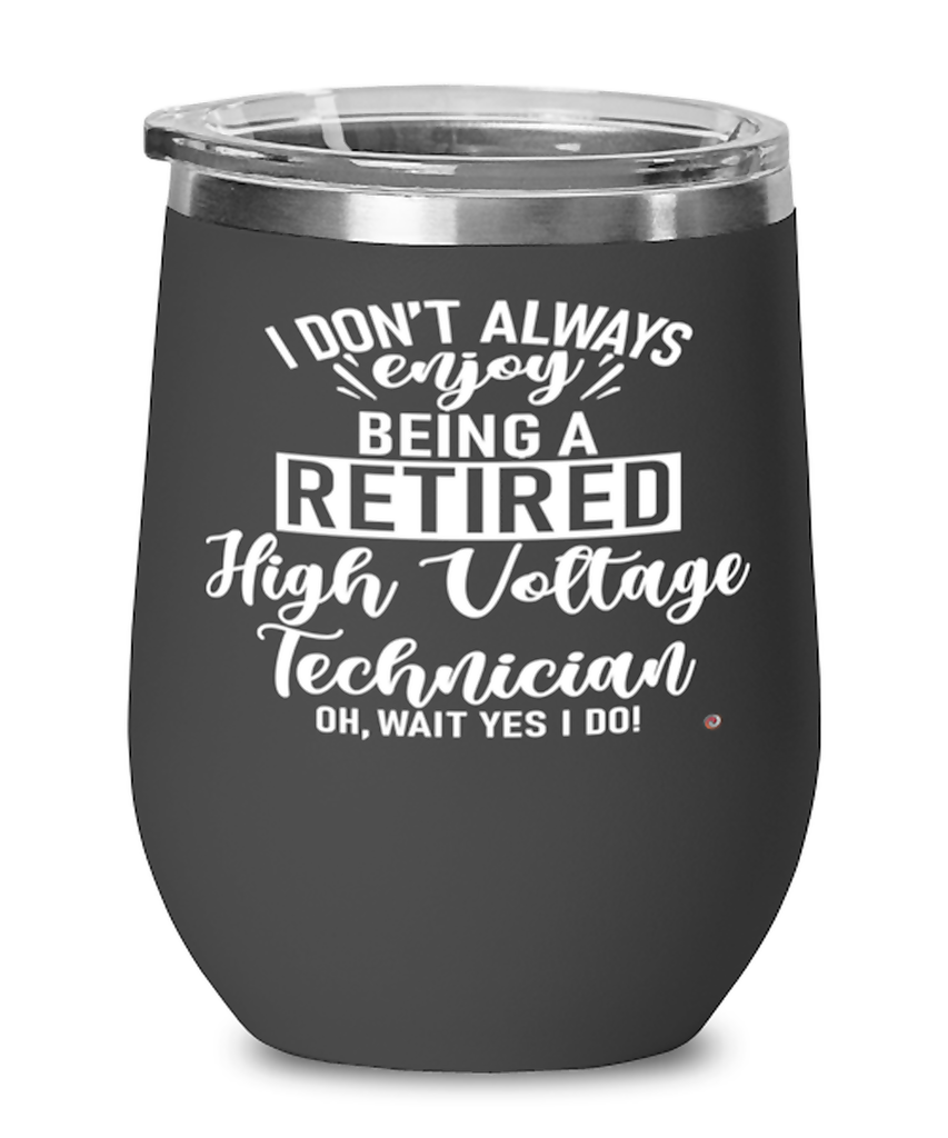 Funny High Voltage Technician Wine Glass I Dont Always Enjoy Being a Retired High Voltage Tech Oh Wait Yes I Do 12oz Stainless Steel Black